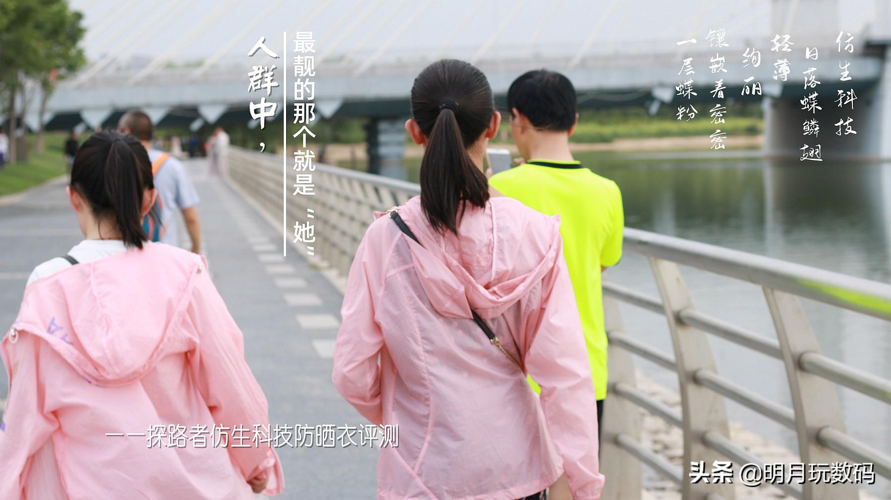 這次試用的這款防曬衣采用了探路者自主研發(fā)的TiEF SKIN仿生防曬科技面料,模仿了日落碟鱗翅結(jié)構(gòu)和蝶粉防曬原理,抗紫外線指數(shù)達(dá)到UPF>40+且UVA透過率<5%。和市面上很多防曬衣不同的是,這款防曬衣還擁有透氣和防水功能。下面,就讓我們看看這款防曬衣到底如何。