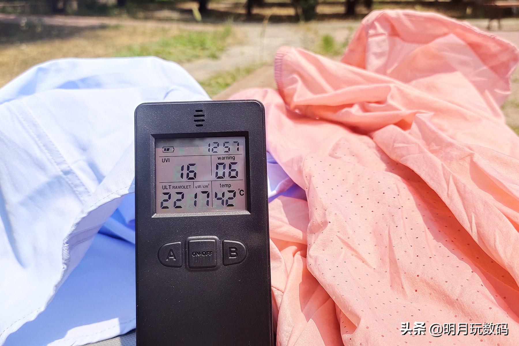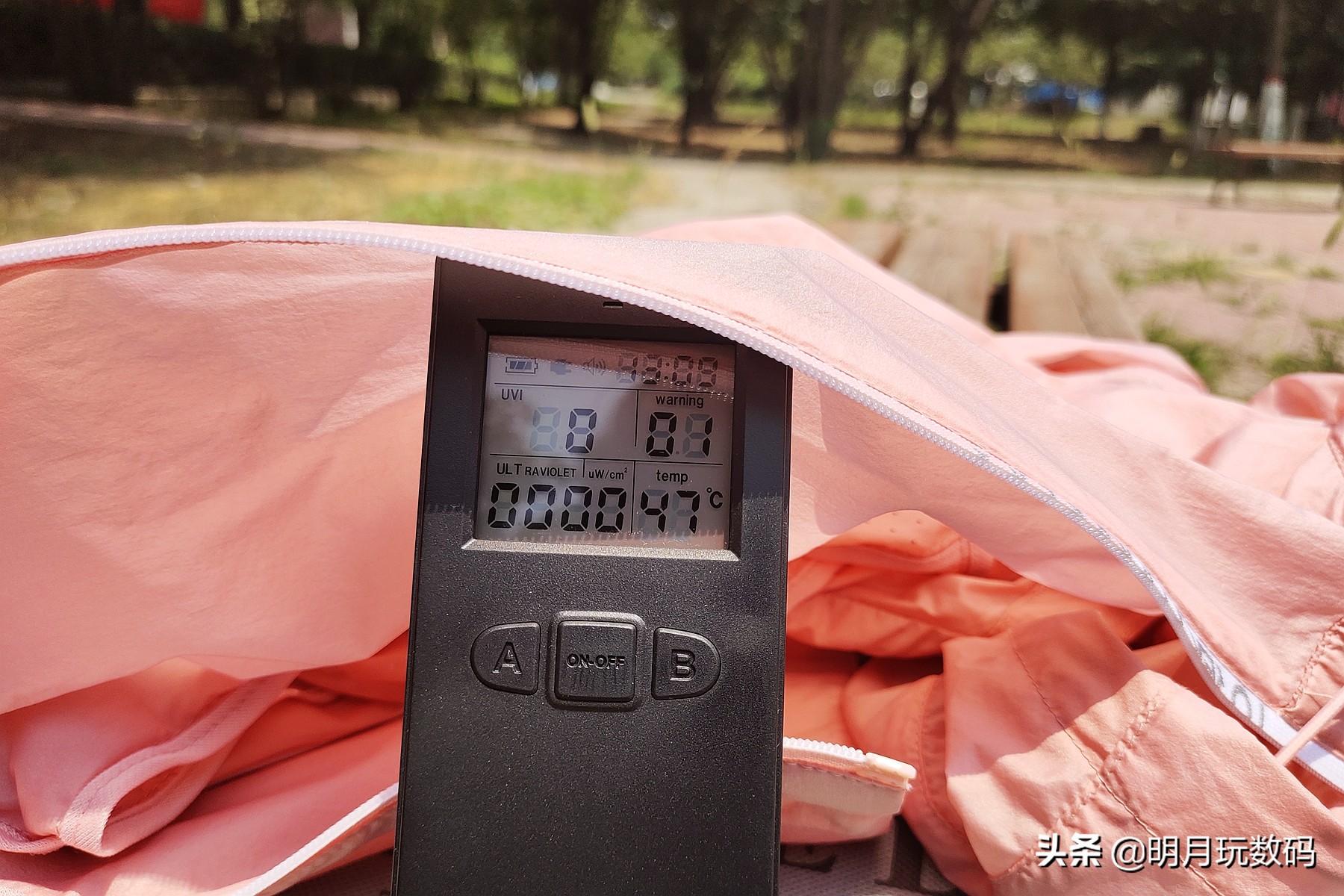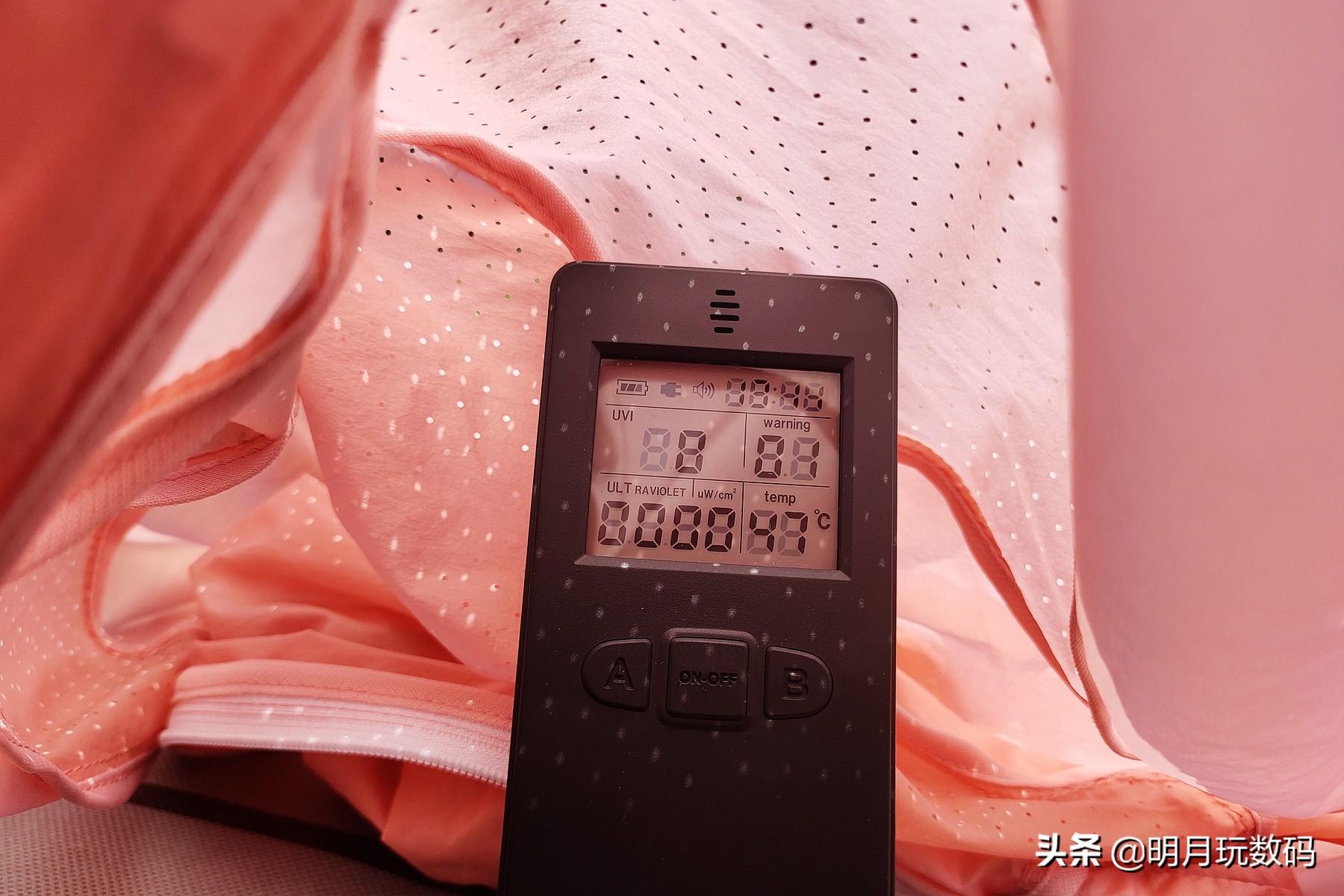 通過這次測試可以看到,通過防曬衣的遮擋,紫外線輻射劑量由兩千多迅速降到了0,可見這款防曬衣的防紫外線果是強(qiáng)悍的。有了這件防曬衣,就可以不用再涂厚厚的防曬霜出門了。