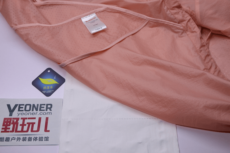 夏天的天氣可能隨時都會有變化。這款防曬衣作為擁有多項(xiàng)黑科技于一身的出行神器,防水果當(dāng)然也少不了。這款防曬衣采用了防潑水處理,下面就對它的防水果進(jìn)行測試。本次測試同樣采用了比較傳統(tǒng)的方式,在衣服內(nèi)部放入紙巾,直接將水曬在衣服上,靜止1分鐘后查看防水果。
