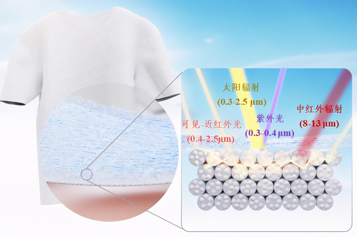 鏡子,不是說(shuō)衣服像鏡面一樣直接反射陽(yáng)光,而是通過(guò)納米材料的特定排布,如同一個(gè)納米迷宮,陽(yáng)光照射進(jìn)來(lái),不斷折射、拐彎,后反射出去。