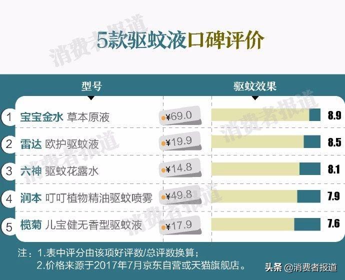 口碑?dāng)?shù)據(jù)顯示,5款驅(qū)蚊液中,寶寶金水草本原液的驅(qū)蚊果較好,消費(fèi)者反映“給寶寶洗澡用較好”“止癢”“寶寶沒有被咬”等。值得注意的是,1歲以下的寶寶不能直接涂抹這種驅(qū)蚊液在皮膚上,需要按比例稀釋后再涂抹。