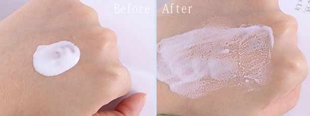 白色乳液質(zhì)地,無香,也沒有難聞的氣味,延展性佳,好推易勻,不油膩,也不搓泥,貼膚成膜快,不用等,抹開即可出門的感覺。