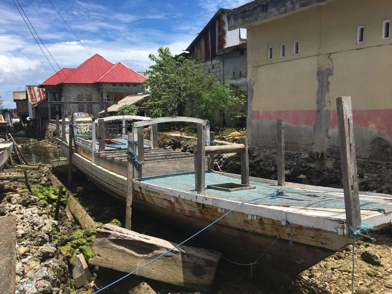 部分巴瑤族去了高地,也有部分仍然留在海邊。Bajo Mola漁村就是,這里的村民,之前住在船上,很像廣東的疍家人。后來(lái),住進(jìn)了淺灘的“水上木屋”,再后來(lái),他們也希望現(xiàn)代化。在離海岸更遠(yuǎn)的地方開(kāi)始拓展,修了小樓房,他們的交通工具——狹長(zhǎng)的獨(dú)木舟,也慢慢被摩托取代。