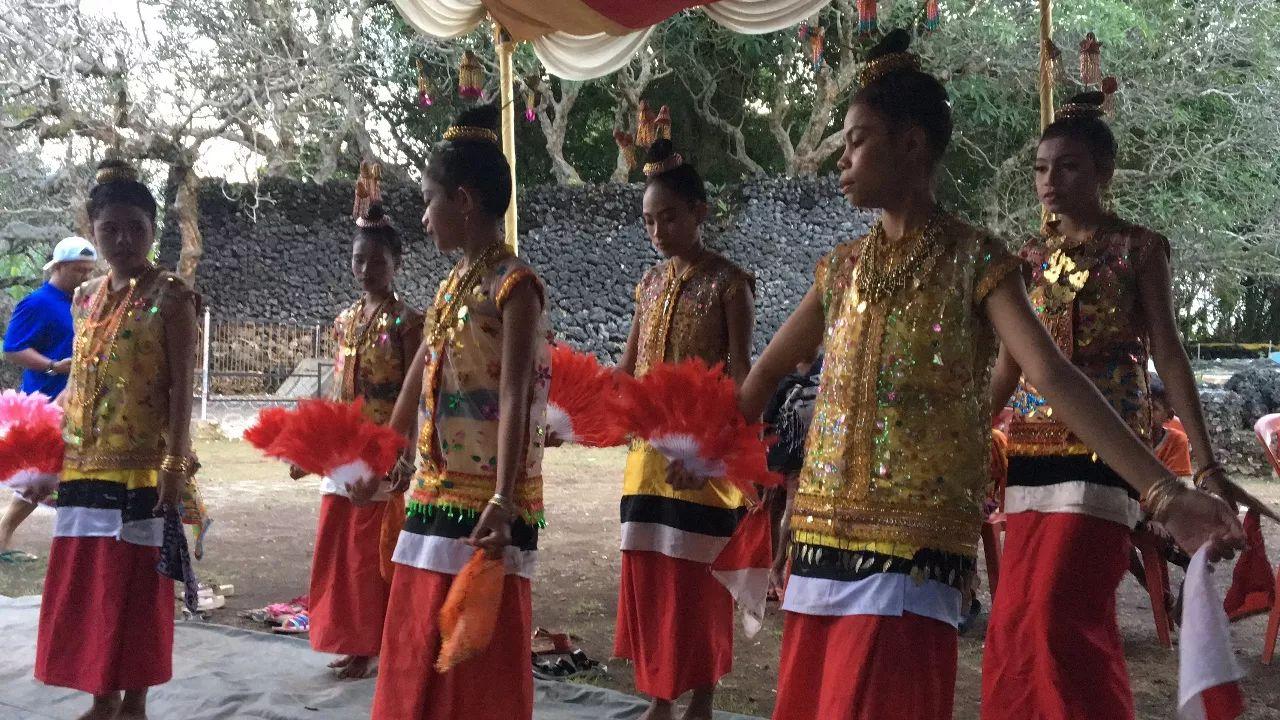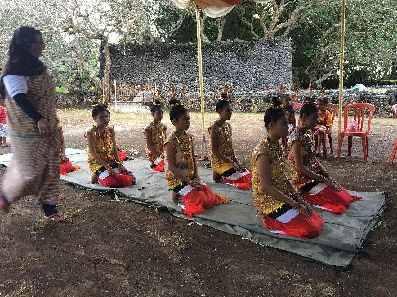 小女孩們?cè)缫咽⒀b打扮好,還化了妝,安靜的跪成兩豎排。原來(lái),這個(gè)村子有種被列入非物質(zhì)文化遺產(chǎn)的歌舞。全部由年輕女孩表演,曲調(diào)簡(jiǎn)單,但是特別悠揚(yáng),意想不到的變調(diào),很是驚喜。