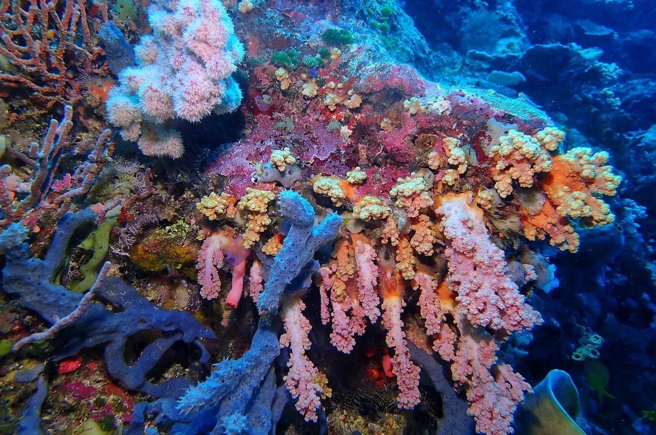 成簇的軟珊瑚色彩繽紛,是海底世界一道壯麗景觀。