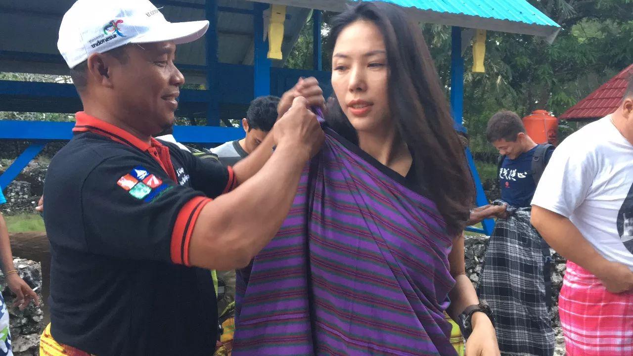 老人們則勤勞的制作做印尼牌防曬霜,用植物、米漿,搗碎,搓成白色小丸子。用的時(shí)候,用水化開(kāi),涂在臉上、背上、肩膀?;鹜脹](méi)有涂防曬,奶奶們嘰嘰喳喳的圍著我,在我裸露的皮膚上涂滿了白色的防曬,果然,酷暑被隔開(kāi),再也沒(méi)有熱到煩躁的感覺(jué)了,一天下來(lái),頂著太陽(yáng)的皮膚,紅都沒(méi)有紅!