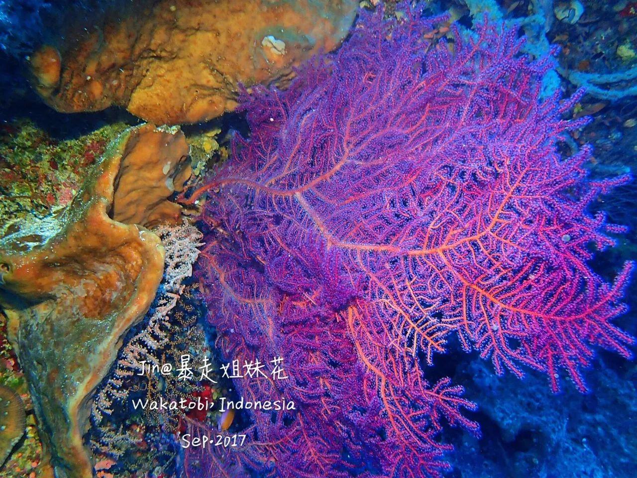另外,顏色各異的軟珊瑚、比人還大的海綿也是一景,還有大海扇,運(yùn)氣好,還可以在上面找到豆丁海馬哦!