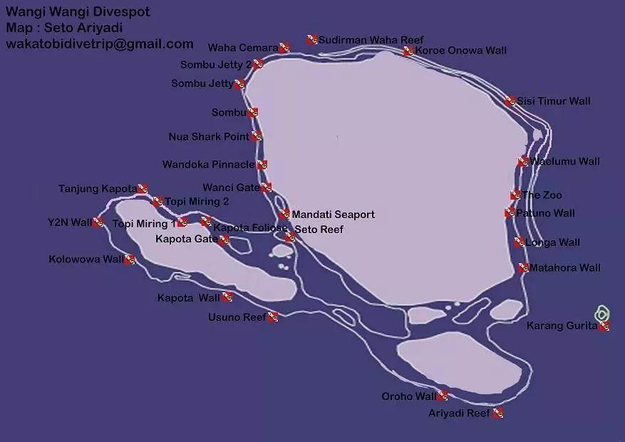在此送上Wangi Wangi潛點(diǎn)地圖,許一個(gè)小愿望,下次來(lái),要掃更多的潛點(diǎn)??!