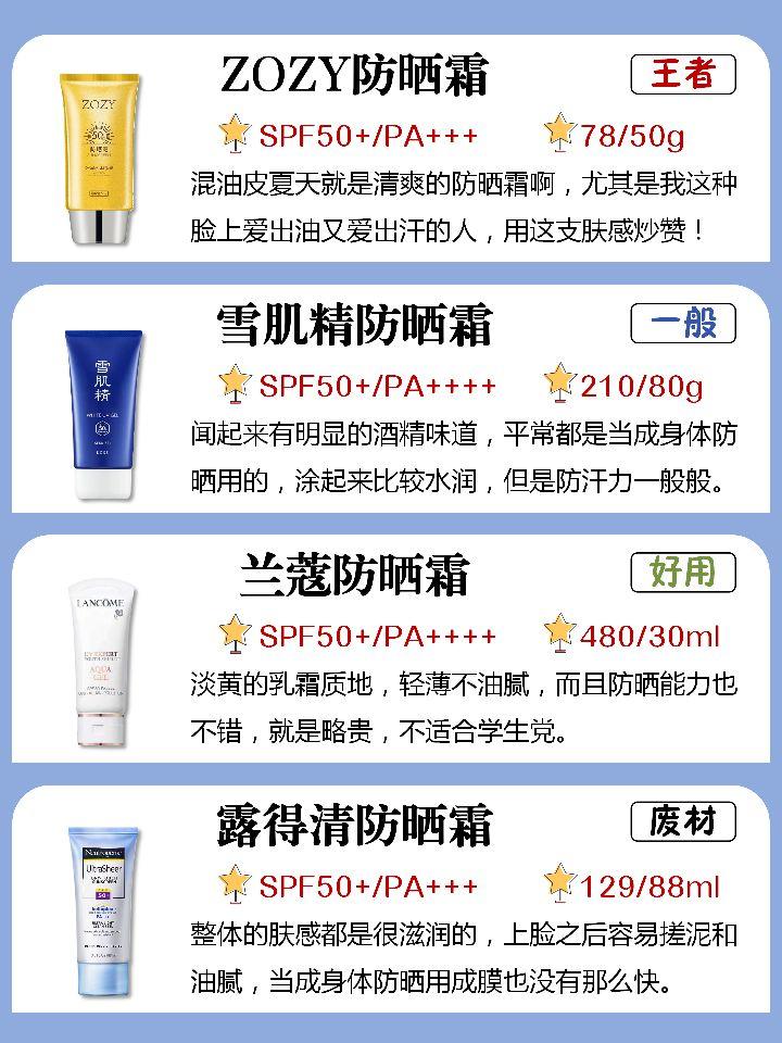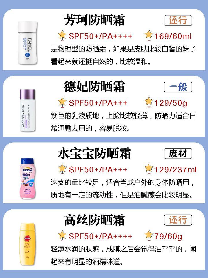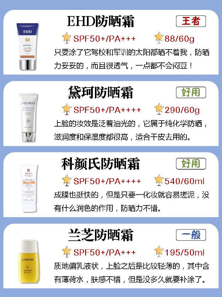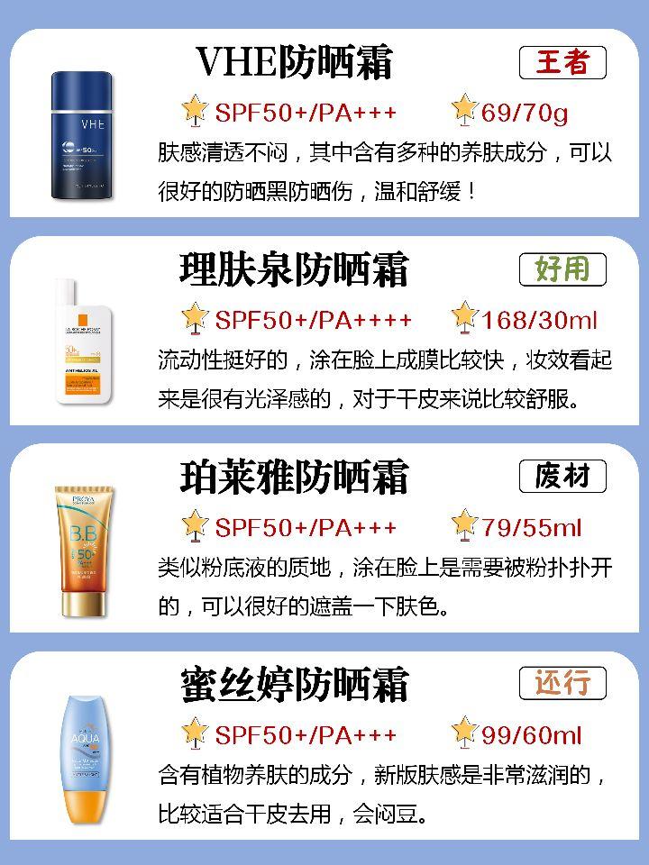 安耐曬、倩碧、曼秀雷敦,這幾個牌子的防曬霜比較好用,價(jià)位低,性價(jià)比高。