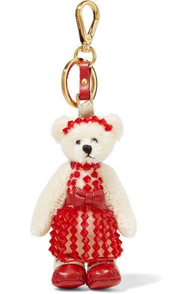 Prada 這款人造羊毛皮鑰匙扣由意大利專業(yè)工匠手工制作。泰迪造型的它名叫 “Sissy”,喜歡穿一條珠子連衣裙,上面系著漂亮的紅色皮革蝴蝶結(jié),皮鞋也要搭配成套——如此精致細(xì)節(jié)賦予它迷人魅力。