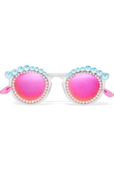 如果你對(duì)走趣致路線的太陽(yáng)鏡青睞有佳,潮牌 Freda Banana 相信正對(duì)你的口味。比如這一 “Lulu” 圓框版本,它的粉色反光鏡片邊緣綴有全息果的水晶綴飾和藍(lán)色人造珍珠,助你從人群中脫穎而出,不論是節(jié)日音樂(lè)會(huì),還是池邊派對(duì),都是矚目焦點(diǎn)。