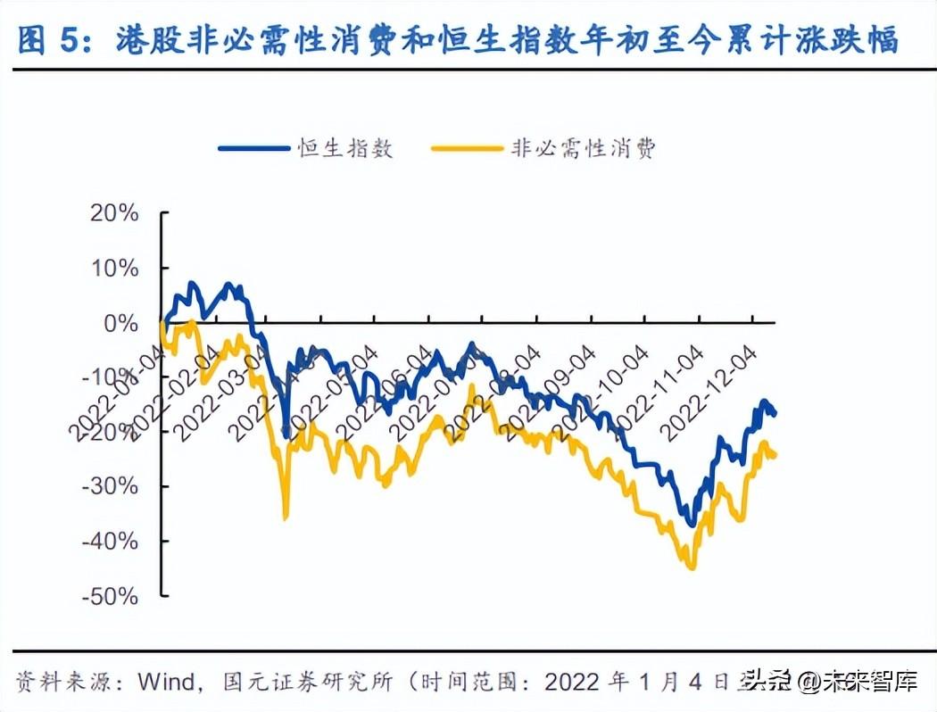 從行業(yè)累計漲跌幅來看,A 股紡服排名 12,港股非必需消費(fèi)排名第 9。2022 年 1 月 4 日至 12 月 16 日,A 股方面,紡織服飾行業(yè)的累計跌幅為-12.30%,在申萬 31 個 一級行業(yè)中排名第 12 位,落后于煤炭、綜合、交通運(yùn)輸、社會服務(wù)、房地產(chǎn)、商貿(mào) 零售、建筑裝飾等行業(yè)的表現(xiàn)。港股方面,非必需性消費(fèi)的累計跌幅為-25.00%,在 12 個恒生綜合行業(yè)中排名第 9 位,落后于能源、電訊、綜合、金融、原材料、必須 性消費(fèi)等行業(yè)的表現(xiàn)。