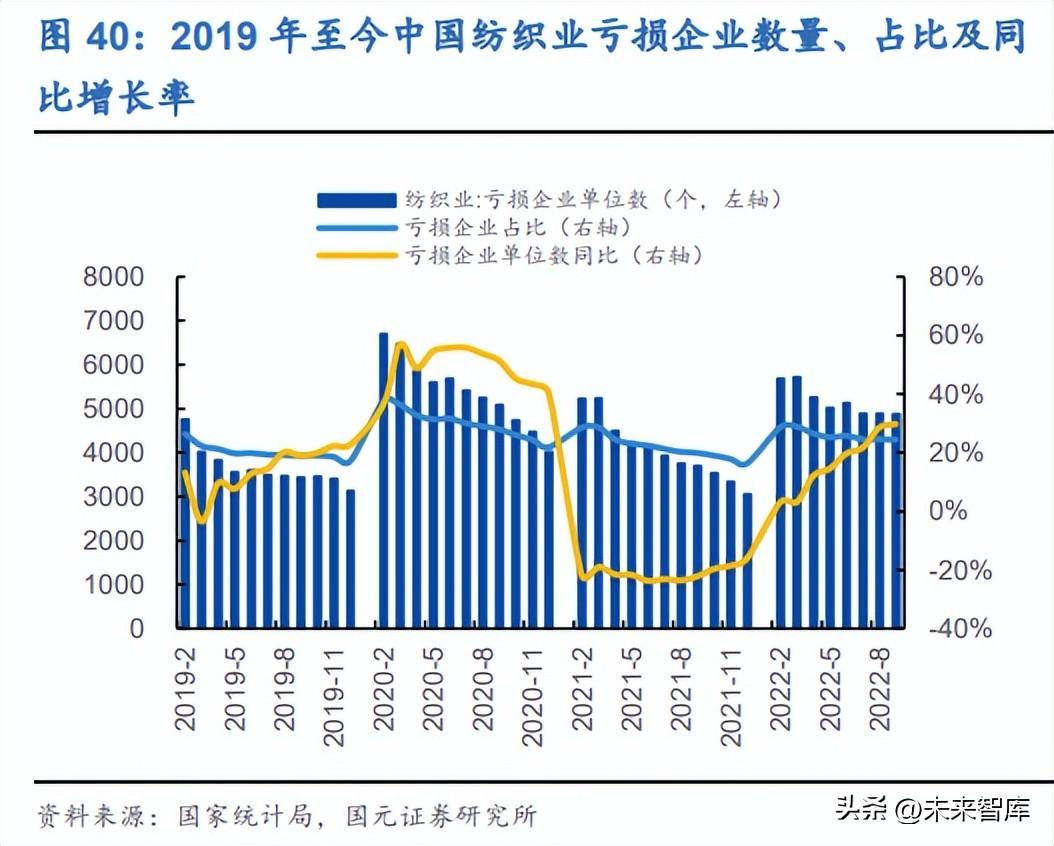 疫情及宏觀環(huán)境影響下,紡織行業(yè)低產(chǎn)能或逐步出清。根據(jù)工信部數(shù)據(jù),2022 年 1-9 月,中國規(guī)模以上紡織企業(yè)工業(yè)增加值同比下降 0.4%,營業(yè)收入 38563 億元, 同比增長 3.1%;利潤總額 1345 億元,同比下降 24.0%;行業(yè)虧損面 24.3%,同比 擴(kuò)大 2.7pct。疫情及宏觀環(huán)境影響下,經(jīng)營困難的紡服企業(yè)數(shù)量同比大幅提升,持續(xù) 虧損下或逐步退出行業(yè),而頭部企業(yè)更有抵御經(jīng)營風(fēng)險的經(jīng)驗(yàn)和能力,更有望抓住疫情放開和經(jīng)濟(jì)回暖之后的行業(yè)機(jī)會。