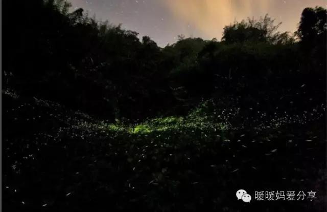 很快就能看到螢火蟲(chóng)了,小小的,有著微弱的光,在黑暗中的樹(shù)叢間飛來(lái)飛去。越往河流深處走,就越密集,甚至能看到像閃亮的圣誕樹(shù)一般的場(chǎng)景。長(zhǎng)這么大,我從來(lái)也沒(méi)見(jiàn)過(guò)螢火蟲(chóng),所以估計(jì)我比暖暖還要激動(dòng)。手機(jī)拍不出來(lái)這么漂亮的場(chǎng)景,放一張別人專(zhuān)業(yè)拍的場(chǎng)景充數(shù)吧!