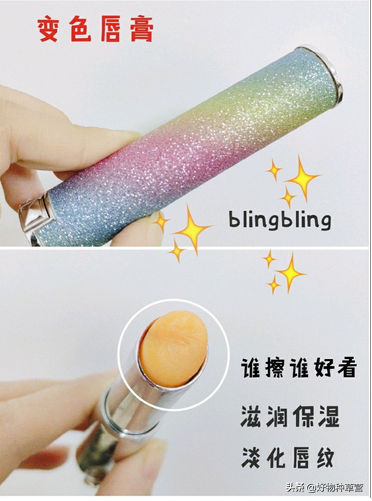 誰擦誰好看系列,第一次買是因為顏值,外表彩虹色blingbling的,素顏出門必備,會根據(jù)溫度變色,溫柔的櫻花粉顏色嘻嘻,抹上去不用擔(dān)心很油膩,里面有蜂蜜,能很好地滋潤唇部,淡化唇部細(xì)紋