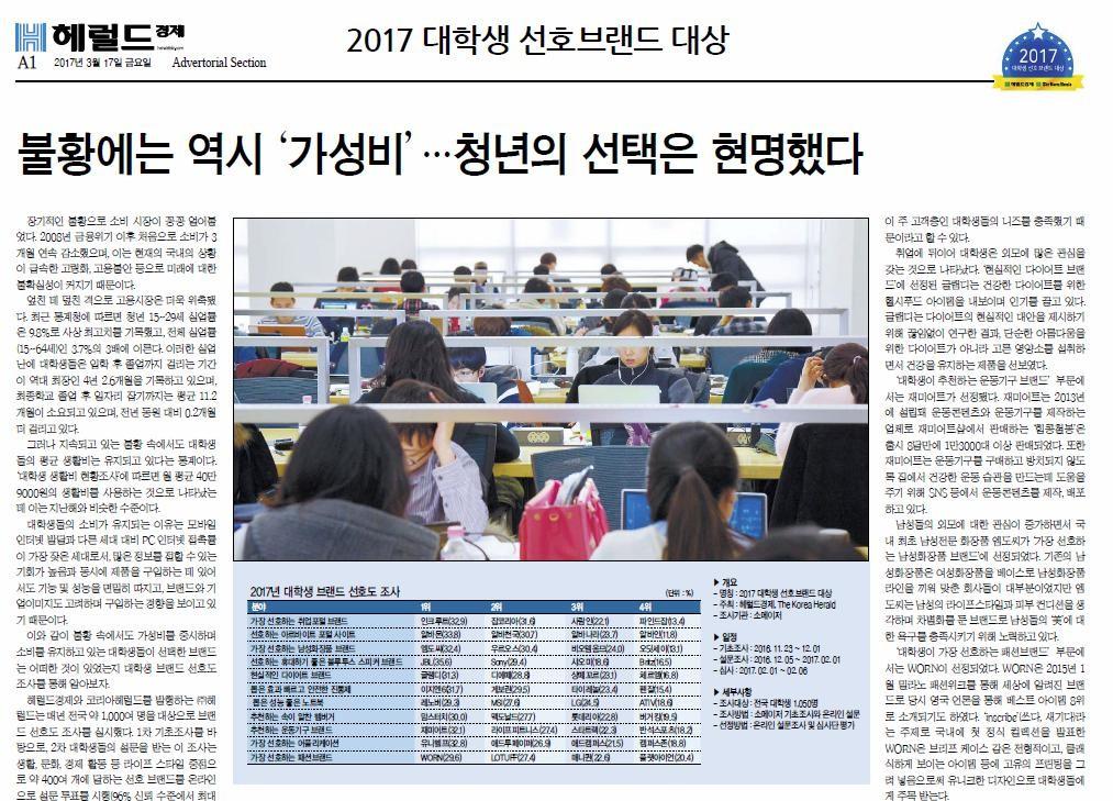 2017年Herald經(jīng)濟(jì)新聞 (大學(xué)生品牌喜愛度大獎(jiǎng))喜歡的男性化妝品品牌第一位;