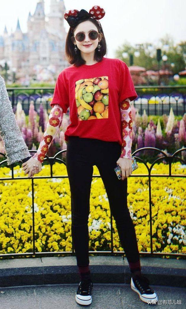 楊冪不愧是帶貨女王,前陣子她的小飛象T恤搭配粉色防曬衣就登上了熱搜,而這件防曬衣看單看有點(diǎn)花俏難看,但是作為內(nèi)搭就會顯得很有時尚感了。搭配小黑褲,又簡單又帥氣。