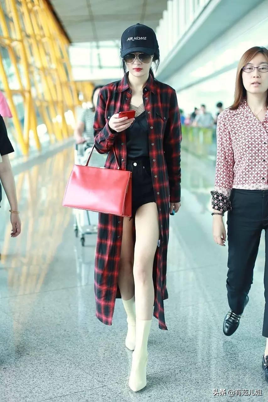 也可以像楊冪一樣選擇一件超長款的格子襯衫,內(nèi)搭黑色的小吊帶,加上一個黑色的超短褲,顯得腿長又細(xì),而從上到下的長款襯衫又能夠?qū)⒄麄€人都包裹起來,基本上都能夠?qū)⒄麄€身體都防曬到位了。