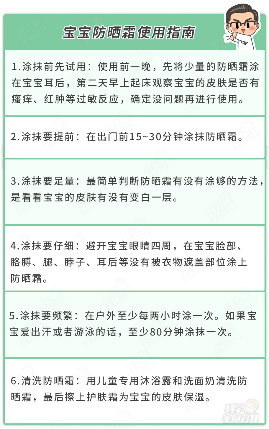 后,科大大還準備了一份防曬霜使用指南,爸媽們快快查收吧!