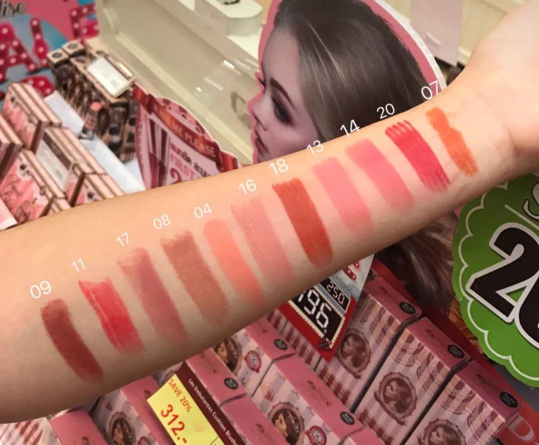 說(shuō)彩妝怎么可以忘了口紅,對(duì)于菌菌這種見(jiàn)一支愛(ài)一支的“花心大蘿卜”來(lái)說(shuō),買(mǎi)口紅真的很考驗(yàn)錢(qián)包啊TAT。因此,泰國(guó)的美貌開(kāi)架口紅真的太對(duì)我的胃口了,顏值高還便宜,要把整個(gè)專(zhuān)柜都扛回家的節(jié)奏啊。