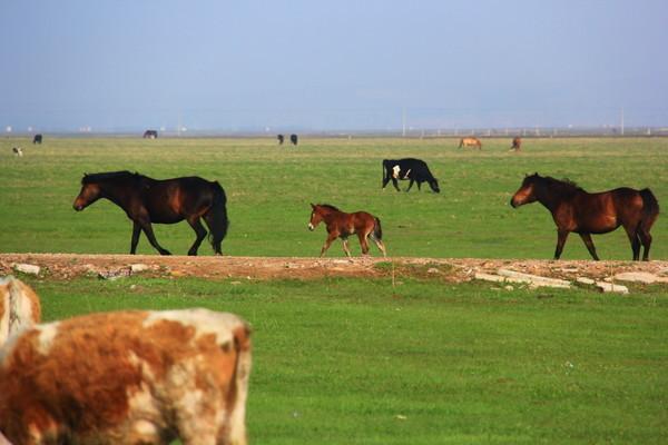 在壩上,有的地方的馬都特別悠閑,沒(méi)人管,自己玩,自己回家!突然聽(tīng)到有馬叫,回頭一看,馬隊(duì)過(guò)來(lái)了!中間還有一匹小馬駒?。?!