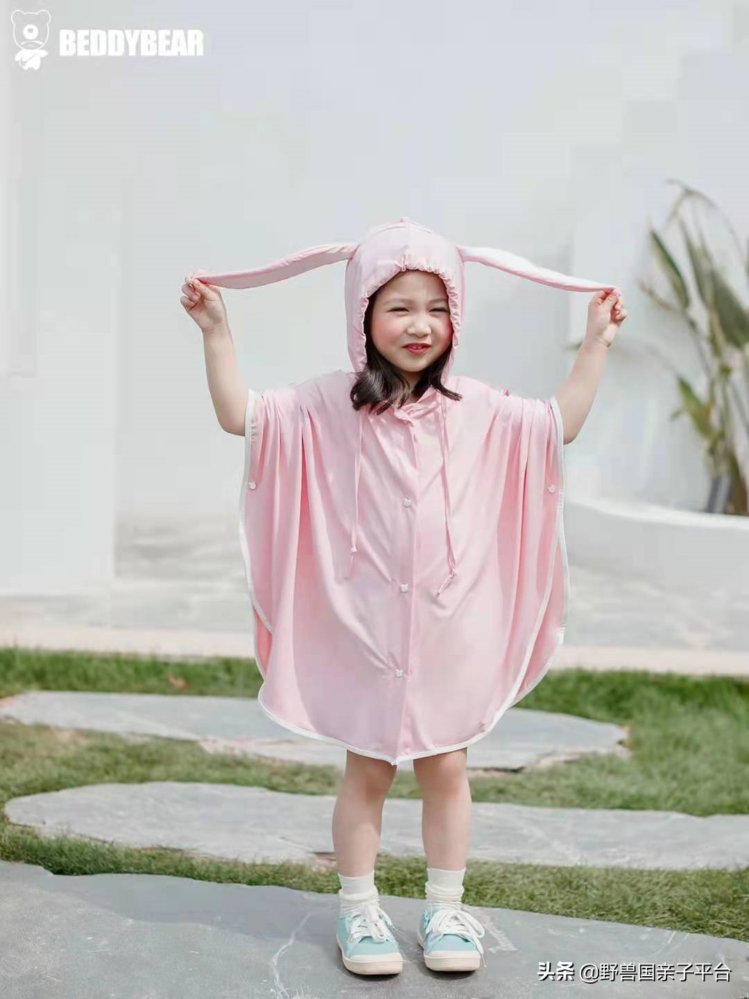 杯具熊的新品防曬衣,斗篷型的流線剪裁,行動(dòng)起來特別輕盈,動(dòng)物造型的帽子,帶有可可愛愛的小耳朵。