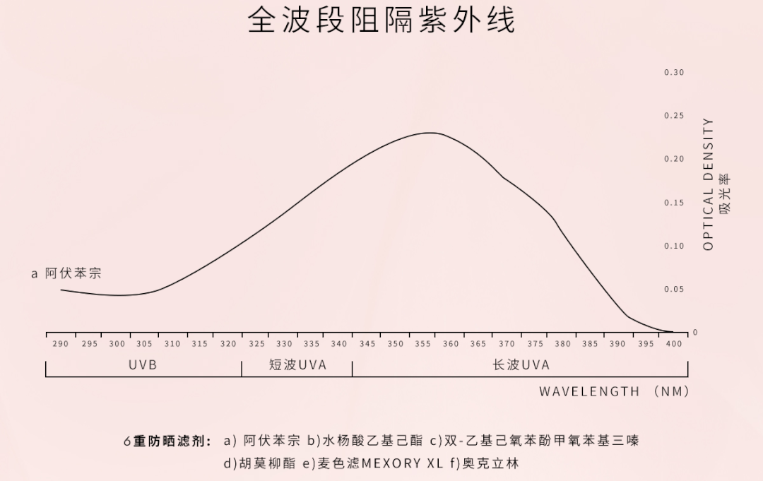 并且混合了其他5種防曬濾劑,6重高倍防曬,能夠?qū)崿F(xiàn)全波段的高倍防曬,防護(hù)紫外線還能防污染。