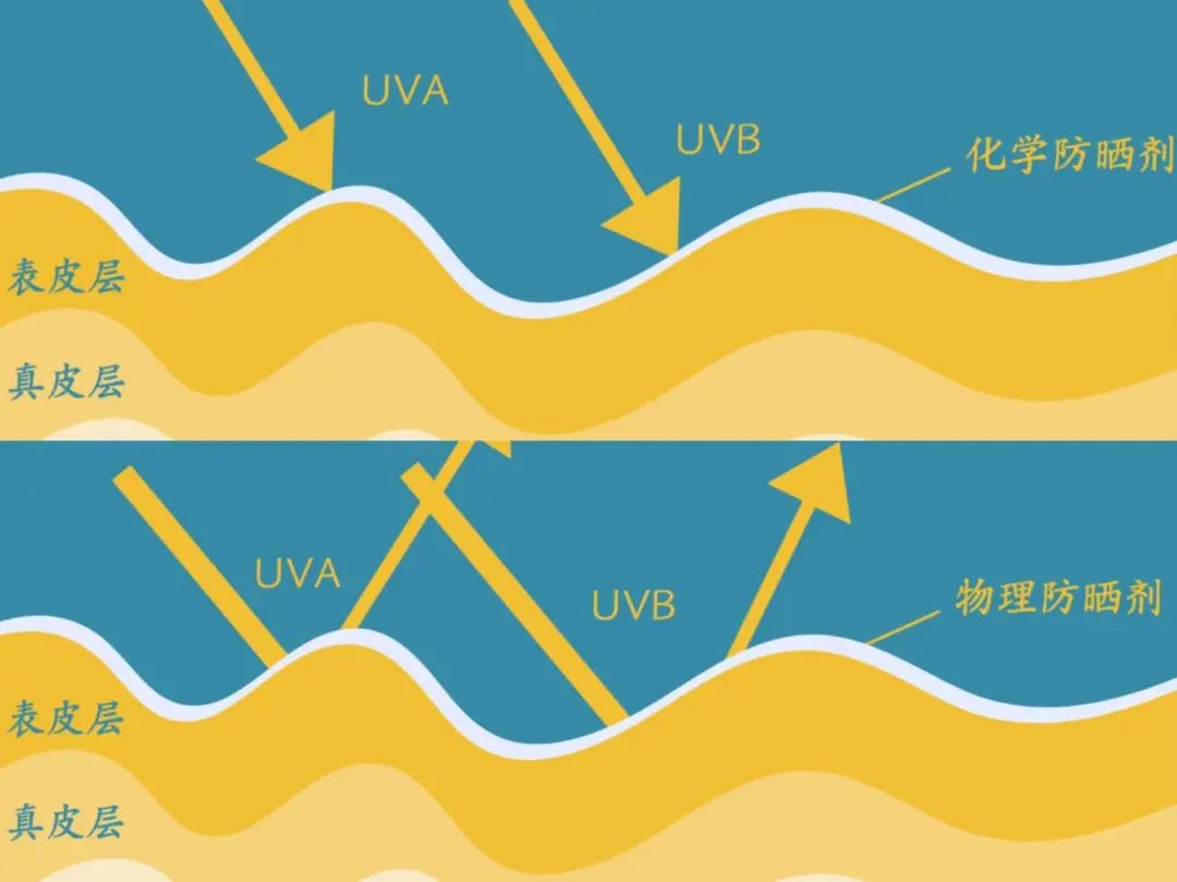 化學(xué)防曬原理的防曬霜輕薄透氣,會吸收掉到達(dá)皮膚的紫外線,但時常需要補(bǔ)。