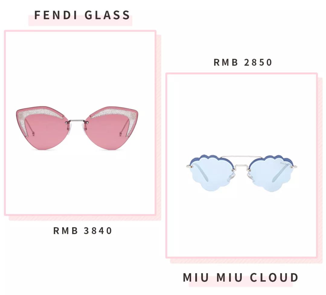 而粉色和藍(lán)色就相對(duì)柔和很多,溫柔系的小姐姐可以考慮,像miumiu還出了這種花瓣形的。