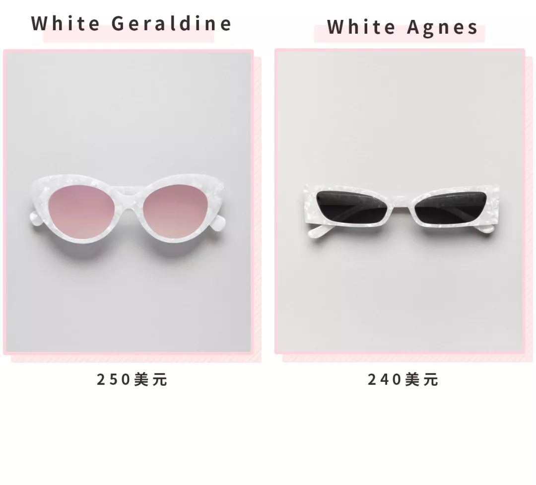它家主要是以窄框墨鏡為主,第一眼看:“哇!好酷!”再看又覺(jué)得里面藏著溫柔。黑色復(fù)古未來(lái)感超濃,紫色紅色又個(gè)性十足,而白色的醋酸貝殼紋系列又把前衛(wèi)和優(yōu)雅結(jié)合在了一起。雖然款式不多,但幾乎款款網(wǎng)紅,價(jià)位在200美金左右。