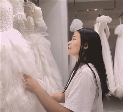 潘曉霞正在為拍婚紗照挑選婚紗。