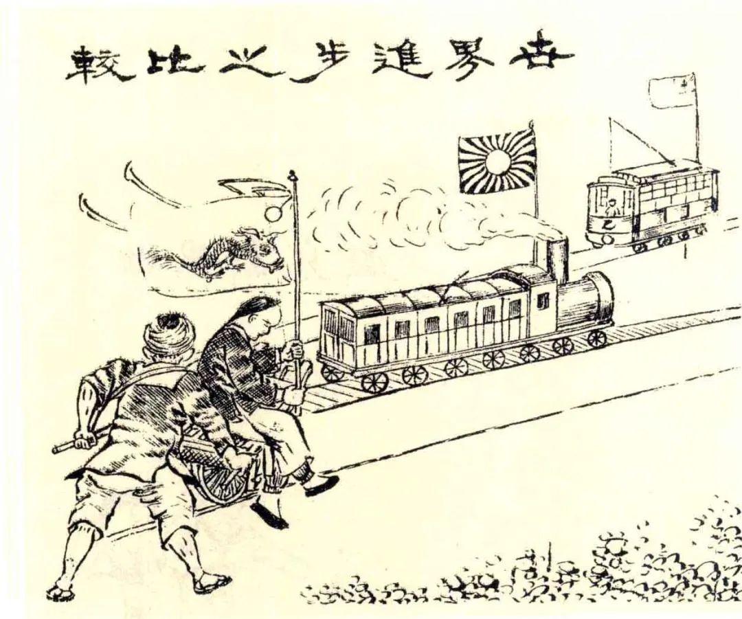 《世界進(jìn)步之比較》,出自晚清《神州畫報(bào)》。
