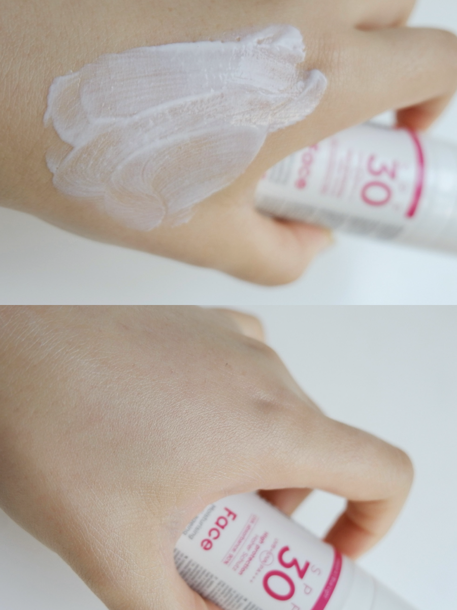 屬于物理+化學(xué)的防曬,這個(gè)防曬值在夏天平時(shí)用用是夠了。質(zhì)地像奶油一樣,確實(shí)有點(diǎn)豐潤(rùn),但只是剛上臉會(huì)有點(diǎn)油光,后續(xù)用散粉壓一下就好啦。涂開以后是透明的沒有潤(rùn)色,很快就成膜了,后續(xù)上妝也不用擔(dān)心會(huì)搓泥。