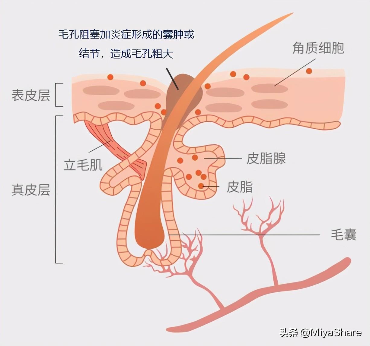 真正堵塞毛孔的是皮膚過(guò)度出油+毛囊口角化異常未能正常代謝的老廢角質(zhì)包裹形成的角栓。