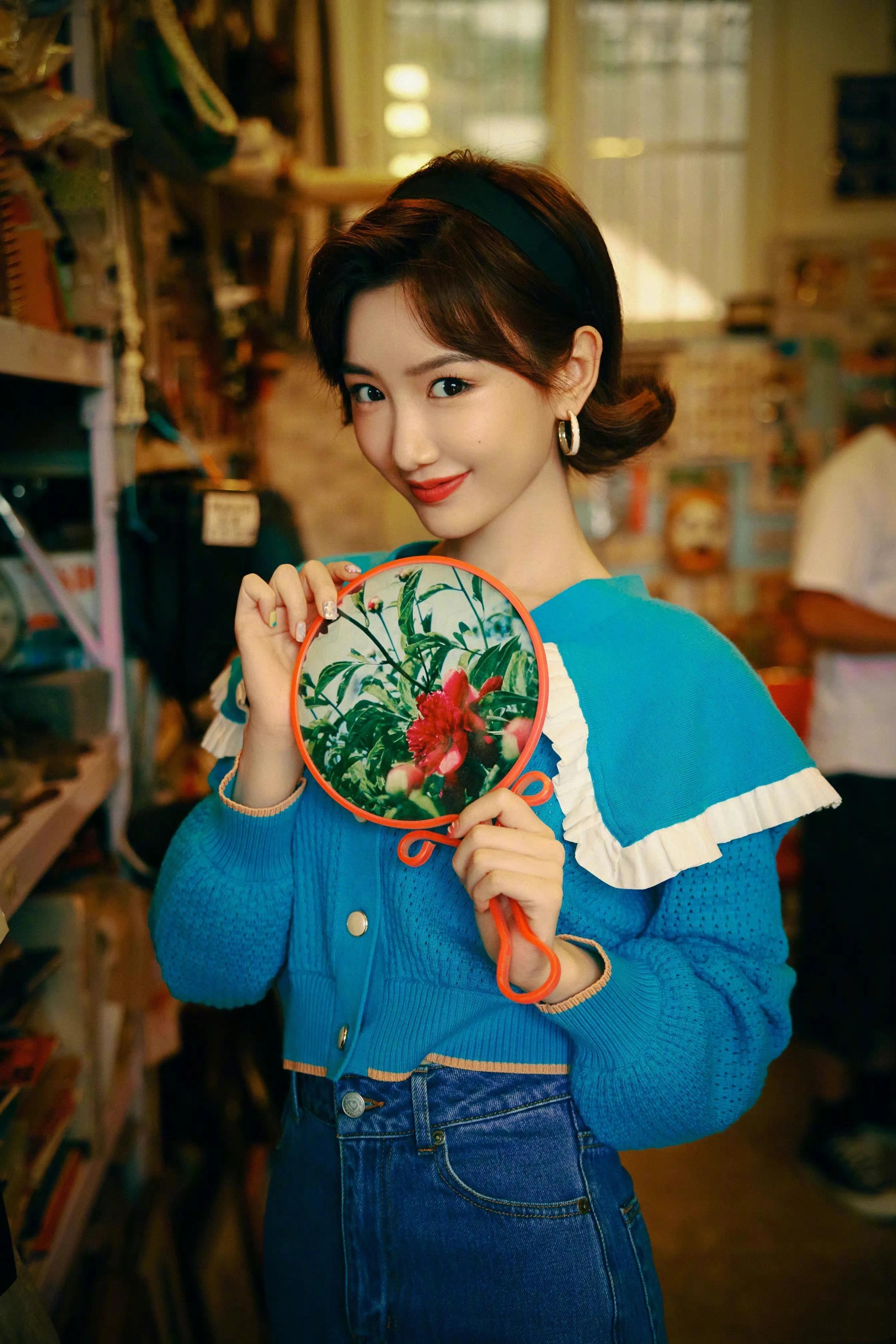 新大片造型中,身穿藍(lán)色大領(lǐng)針織衫搭配牛仔褲,可愛又極具學(xué)院風(fēng),又美又仙還特別帥氣,復(fù)古發(fā)型經(jīng)過發(fā)飾點(diǎn)綴,仿佛回到了七八十年代的安靜歲月,讓人不禁感嘆:太美了。