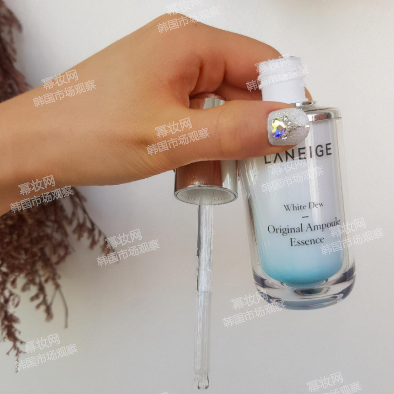在韓國江西區(qū)16家店中,主營精華的美妝店就占到50%,可以說精華是江西區(qū)美妝市場的主流品類,在這次的探店中,水光亮白精華原液就是店鋪的一款代表性產(chǎn)品。
