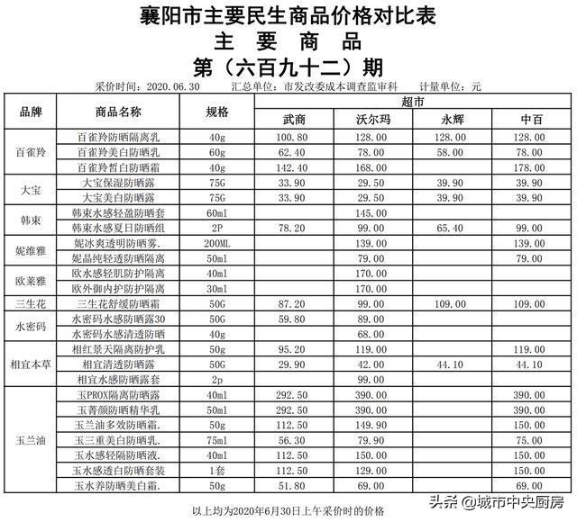 因此,2020年7月1日,本周我們對超市玉蘭油、妮維雅、百雀羚等9個(gè)品牌防曬霜價(jià)格進(jìn)行調(diào)查比對,結(jié)果發(fā)現(xiàn),除少數(shù)超市對指定產(chǎn)品做促銷活動(dòng)價(jià),其他超市大部分商品價(jià)位相對持平。