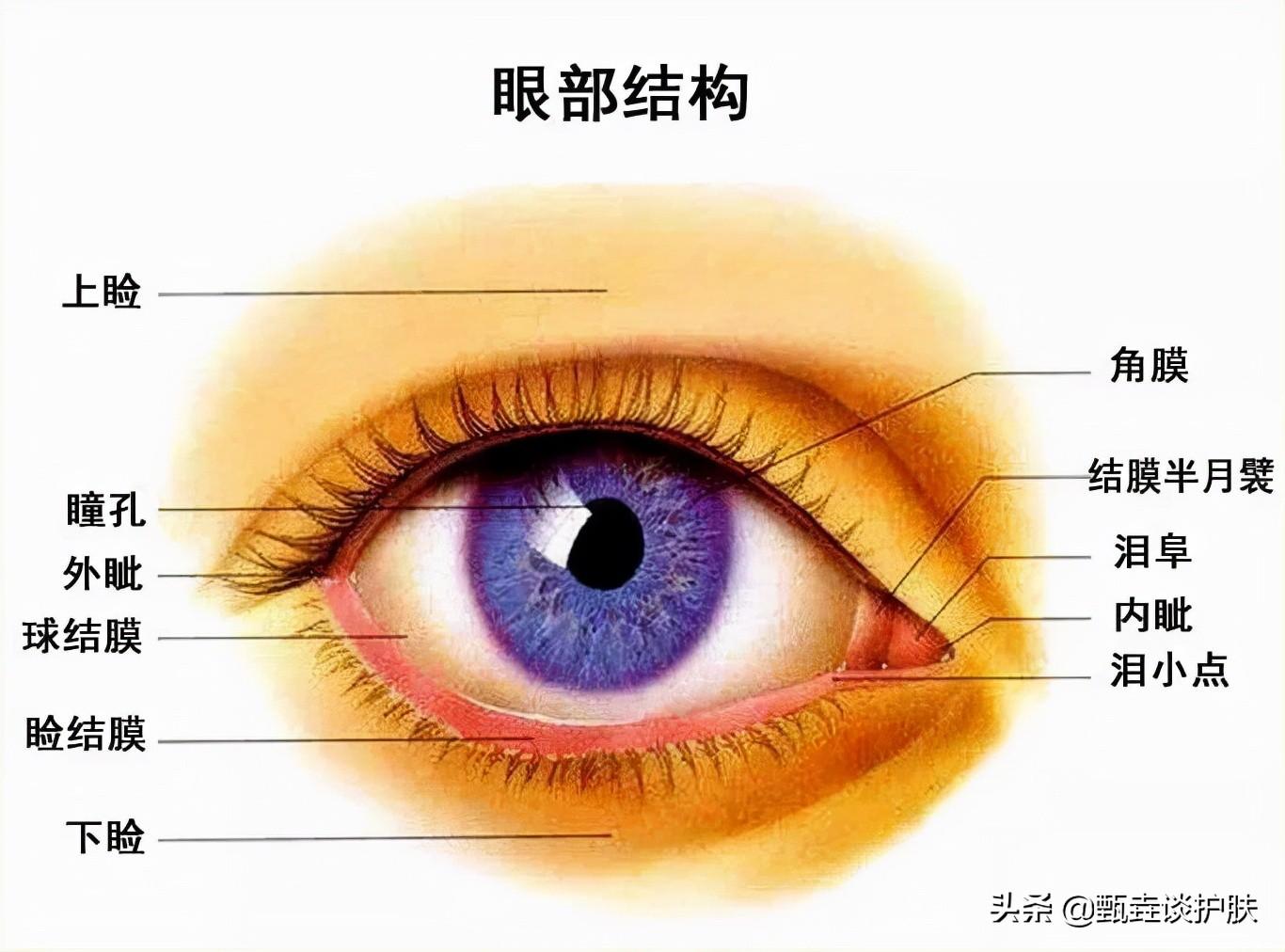 在和小伙伴們討論眼部防曬時(shí),發(fā)現(xiàn)很多小伙伴經(jīng)常混淆眼部肌膚和眼周肌膚。甄垚找了一張眼部結(jié)構(gòu)圖,如下圖: