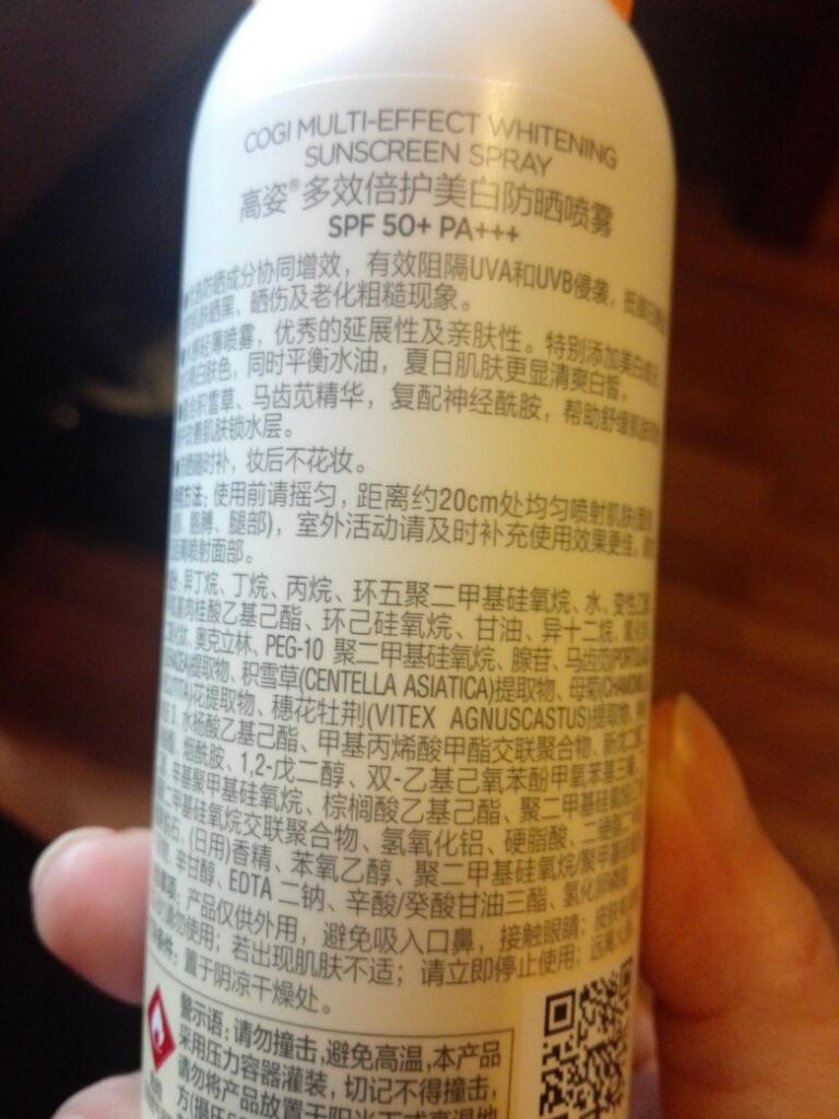 總體而言對這款高姿多美白防曬噴霧感覺很滿意,果不錯價格合適使用方便,用完的話打算就盯著它了,其它防曬品暫時不考慮了。
