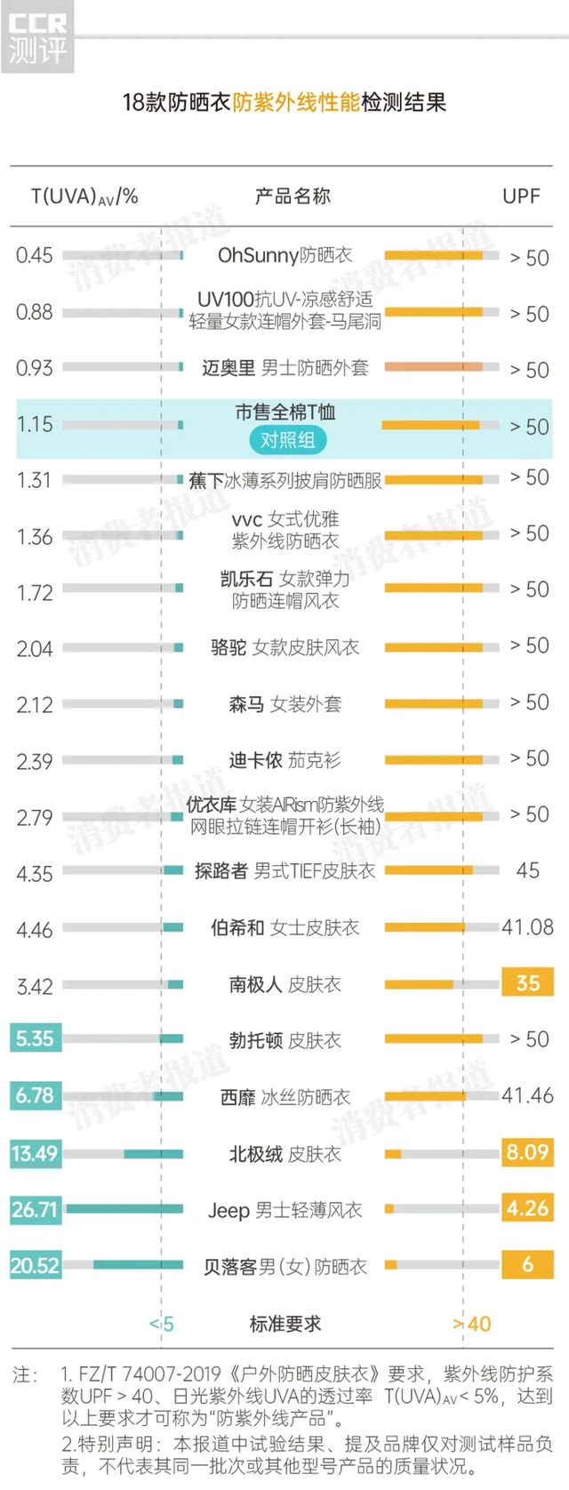 更絕的是,《消費者報道》檢測結(jié)果顯示,市面上許多知名戶外品牌“防曬衣”的防紫外線效果竟不如一件普通的全棉T恤。