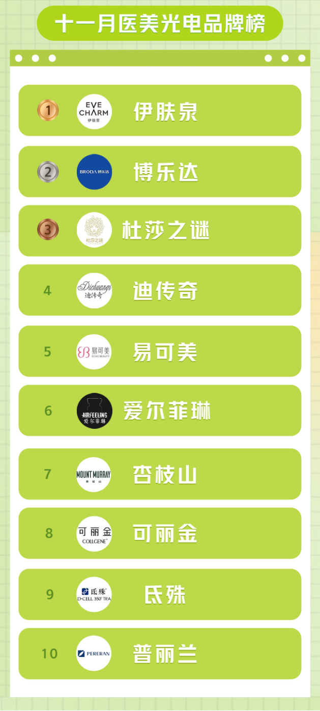 3、11月醫(yī)美光電品牌廝殺猛烈,榜單格局變化劇烈。