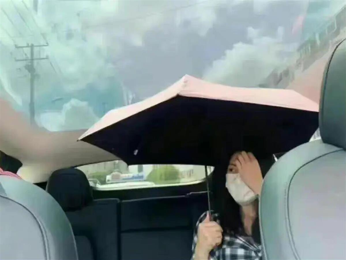 車(chē)內(nèi)打起了太陽(yáng)傘
