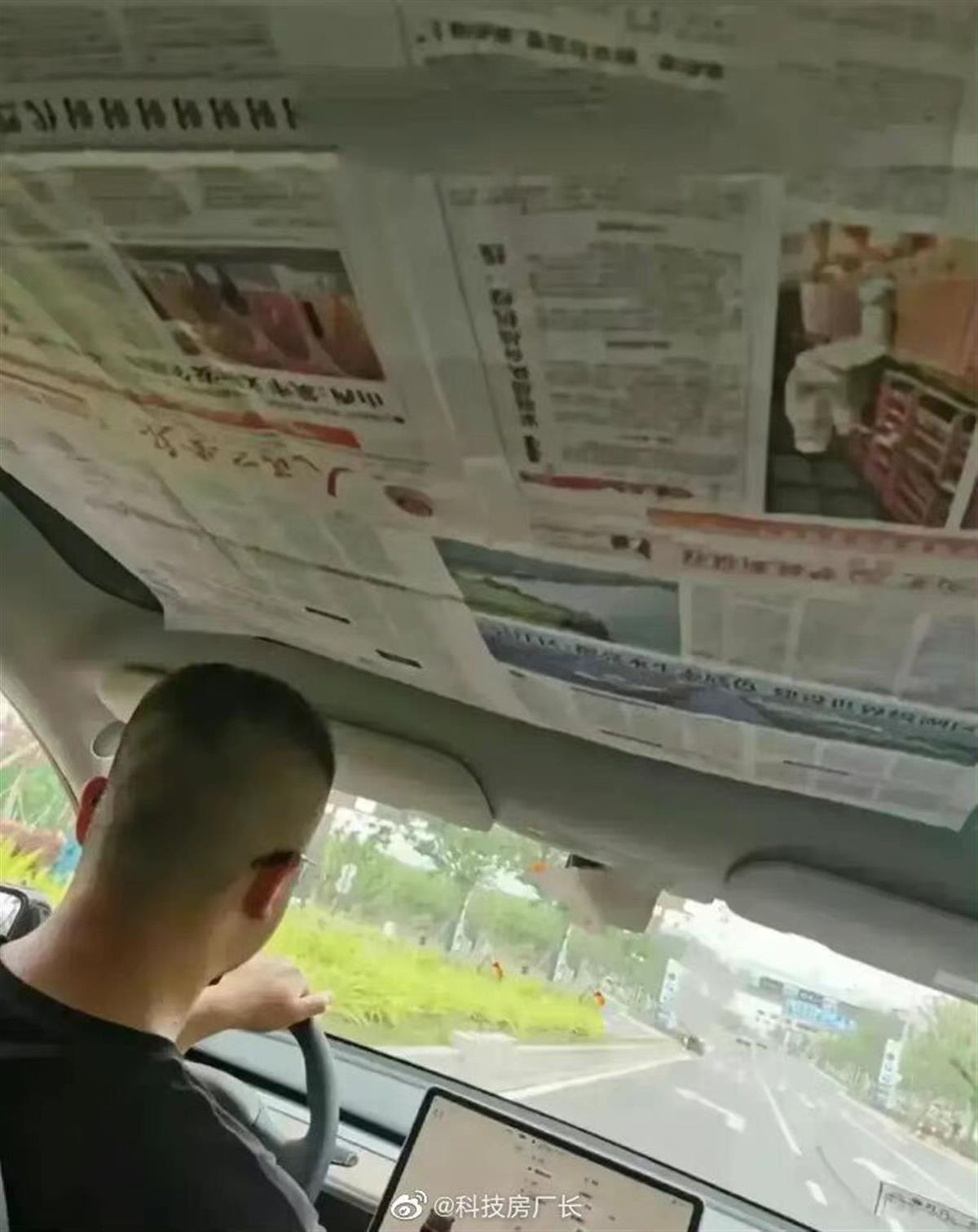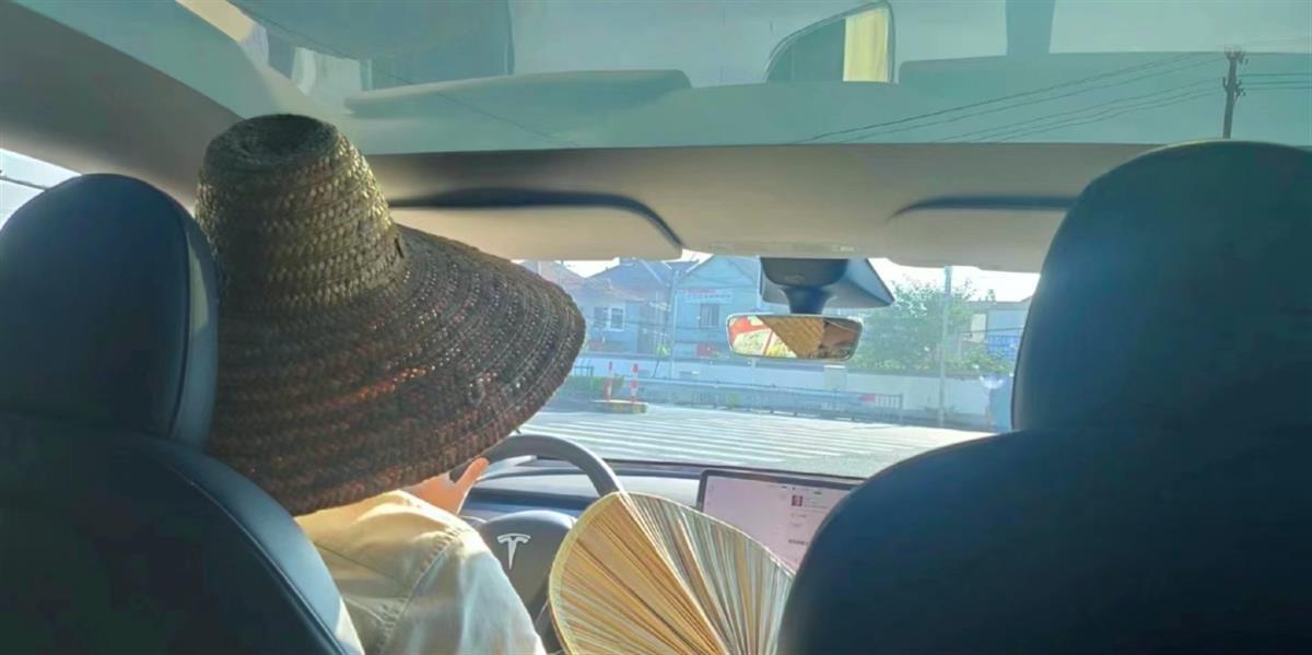 有車(chē)主在社交媒體上,曬出在車(chē)內(nèi)戴斗笠的照片稱(chēng),“特斯拉車(chē)主頭大,陽(yáng)光暴曬沒(méi)有遮陽(yáng)簾曬得頭疼。”