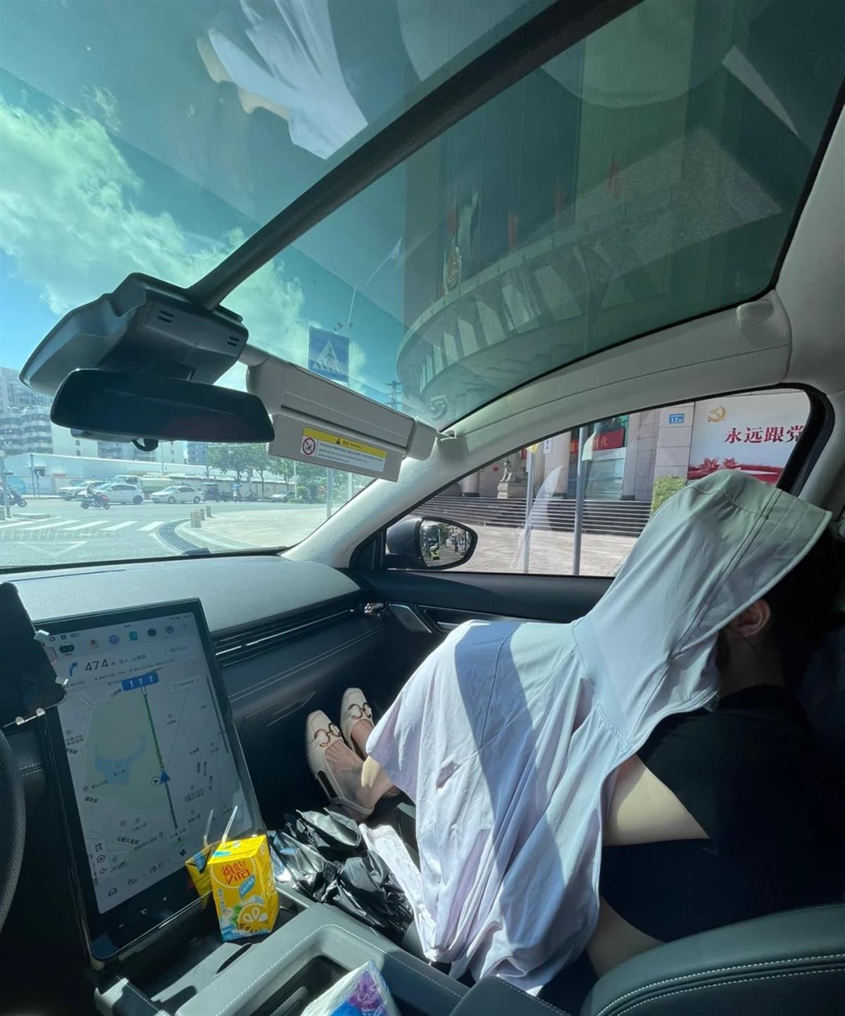 另一邊,小鵬汽車(chē)車(chē)主若希(化名)也曬出自己在車(chē)內(nèi)穿防曬衣防曬的照片,稱(chēng)“這個(gè)全透明大頂棚,在廣東大熱天這是要曬暈了”,并質(zhì)問(wèn)“設(shè)計(jì)師,你中午開(kāi)過(guò)車(chē)嗎”。