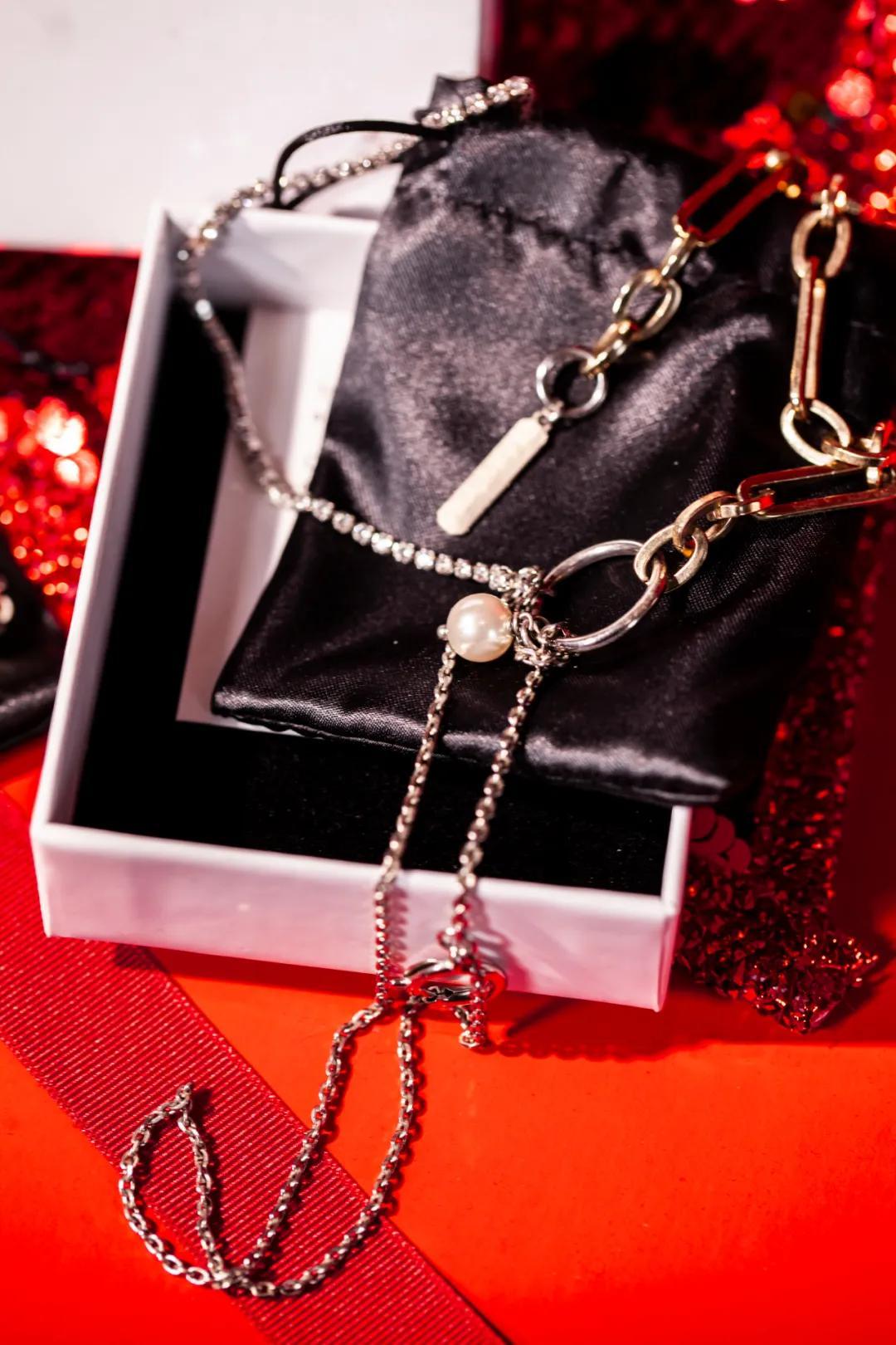 比較標志的金屬鏈條很有朋克的風格,珍珠和水鉆的元素也經(jīng)常出現(xiàn),拼接的設(shè)計,每個元素都相得益彰,包容性很強,就真的百搭實用!