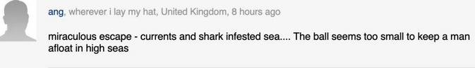 “奇跡般的逃生,(這可是)洋流和鯊魚出沒的?!@個球看起來也太小了,根本沒法讓一個人在公海中漂浮?!?/span>