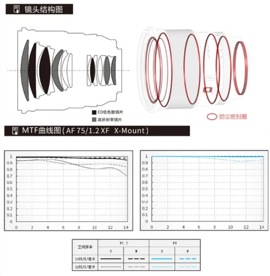 唯卓仕 AF 75mm F1.2 XF 采用日本進口 HOYA 特殊硝材,采用 11 組 16 片光學結(jié)構(gòu),4 枚高折射率鏡片和 3 枚 ED(低色散)鏡片,有減少影像邊緣可能出現(xiàn)紫邊的情況,實現(xiàn)媲美 APO 級的色散矯正。此外,鏡頭還采用了高清納米多層鍍膜技術(shù),有減少入射光產(chǎn)生的眩光和鬼影,獲得清晰銳利的影像。