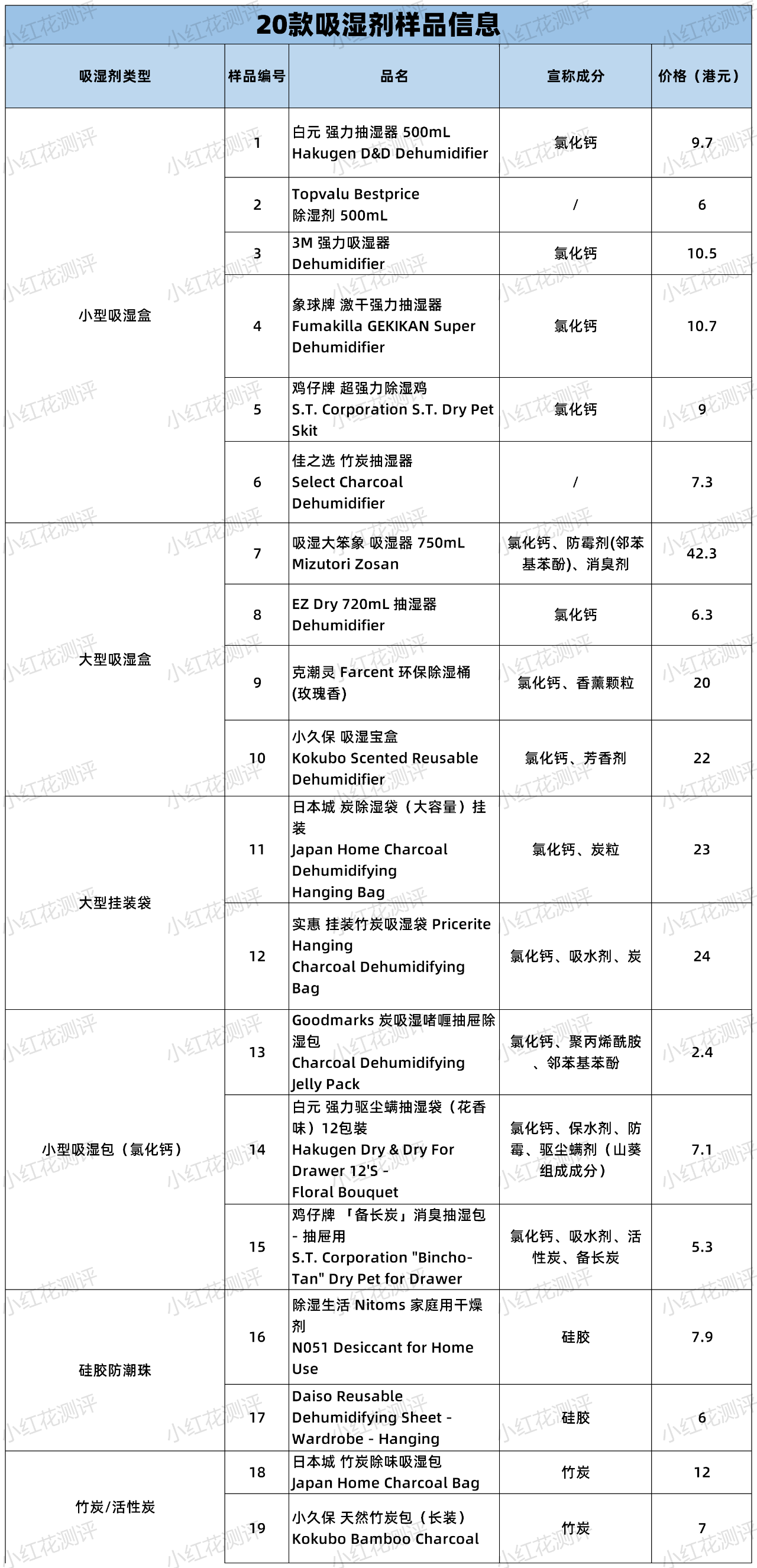 今天,花爸整理了香港消費(fèi)者委員會(huì)對(duì)20款常見(jiàn)的吸濕劑的測(cè)評(píng),供大家參考選擇。