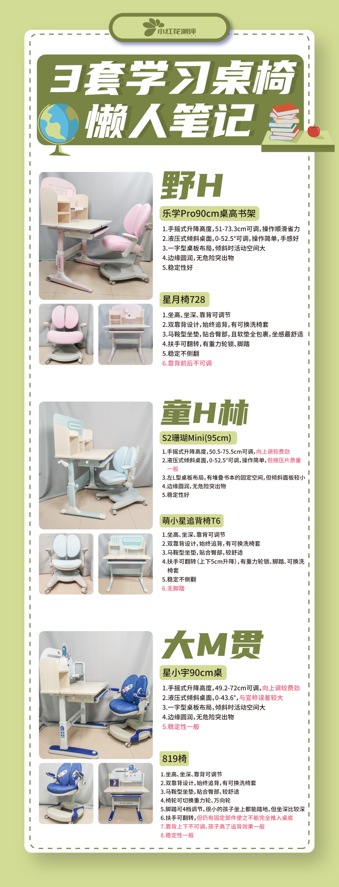 參照推薦性標(biāo)準(zhǔn)GB/T 3976-2014《學(xué)校課桌椅功能尺寸及技術(shù)要求》,野H、童H林、大M貫低桌高分別為51cm、50.5cm、49.2cm,都可以滿足低110cm身高的孩子。
