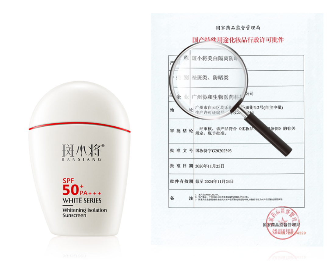 斑小將旗下明星產(chǎn)品“斑小將美白隔離防乳”持“證”上場,一款擁有防曬的特性:超強(qiáng)防曬力,使用感輕薄水潤質(zhì)地,3秒成膜不粘膩,是集UV防護(hù)力、卓越膚感及美白養(yǎng)膚特性于一身的防曬產(chǎn)品。
